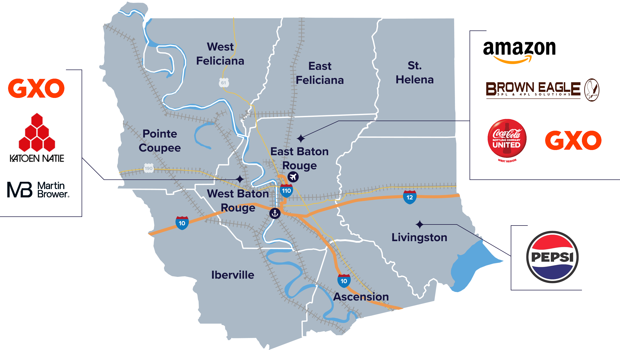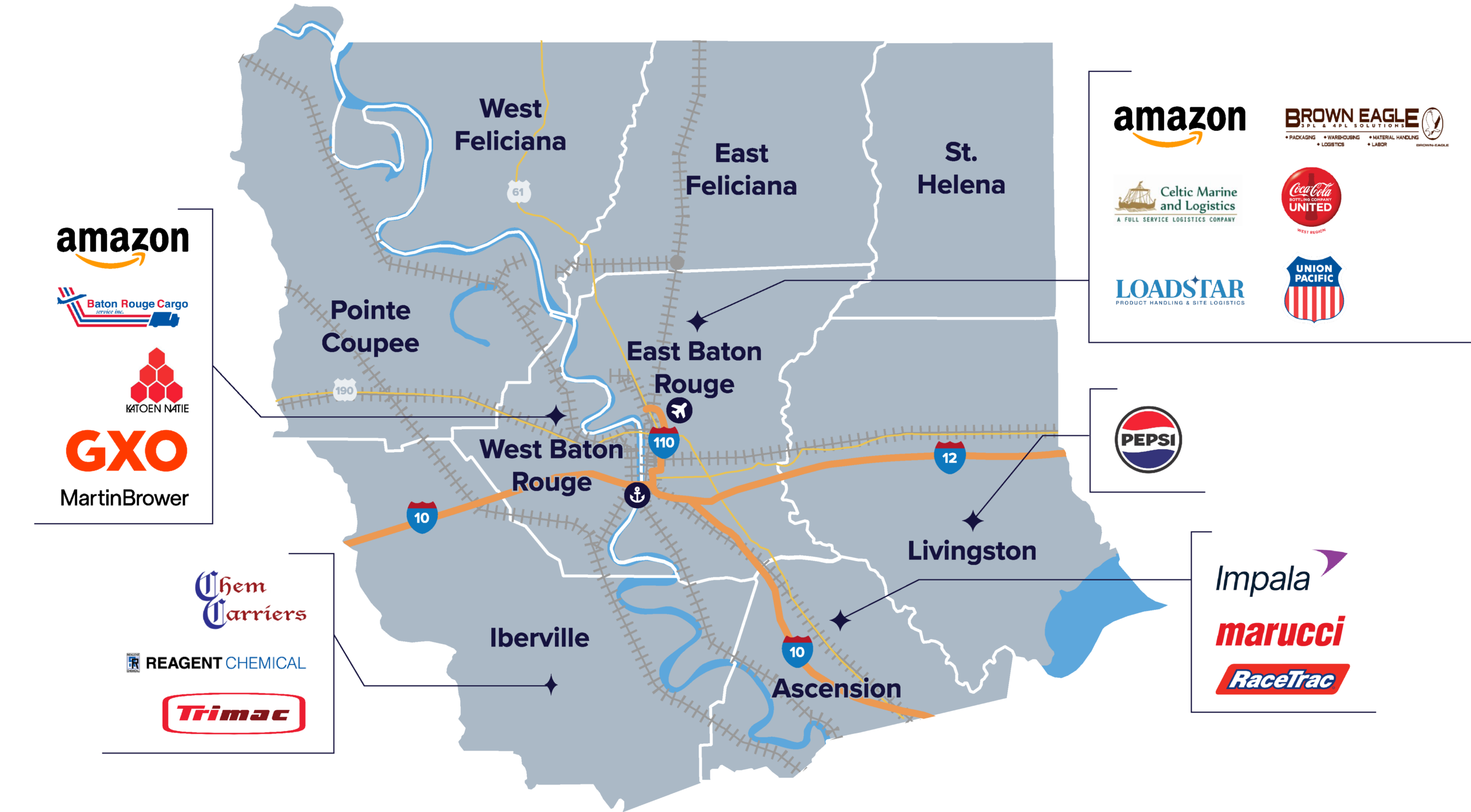 Whether you’re moving goods, managing distribution, or optimizing a global supply chain, the Baton Rouge region provides the connectivity, infrastructure, and workforce to deliver results.